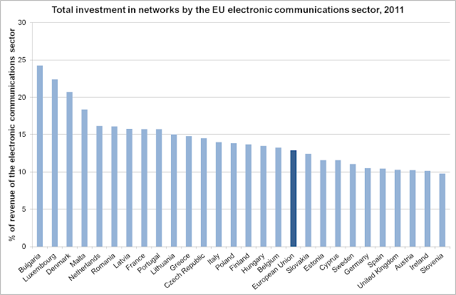placed Slovenia in the last position among the EU Member States (Figure 2). Investment in the electronic communications sector recovered to EUR 173 million in 2012,